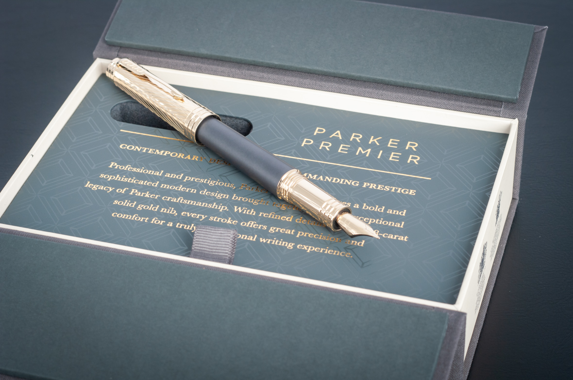 Перьевая ручка Parker Premier Storm Grey GT от официального дилера Parker в Коломне. Вы можете дополнительно заказать гравировку, которая подчеркнет Вашу оригинальность и придаст памятность статусному подарку. Все ручки Паркер поставляются в фирменном футляре.