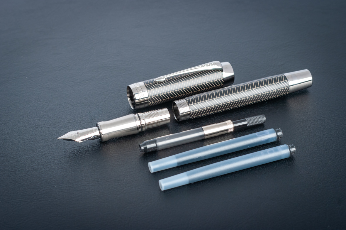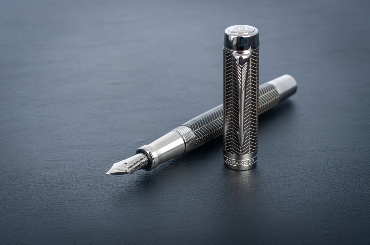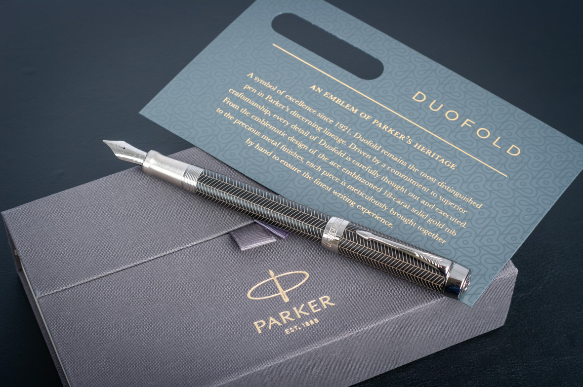 Перьевая ручка Parker Duofold Prestige Centennial Black Chevron CT от официального дилера Parker в Коломне. Вы можете дополнительно заказать гравировку, которая подчеркнет Вашу оригинальность и придаст памятность статусному подарку. Все ручки Паркер поставляются в фирменном футляре.